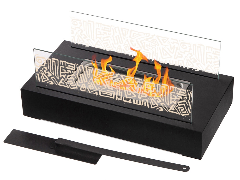 Комплектность металлическая база, стеклянные стенки- 2шт, емкость для топлива, заглушка для тушения пламени, керамическая вата, инструкция по применению
