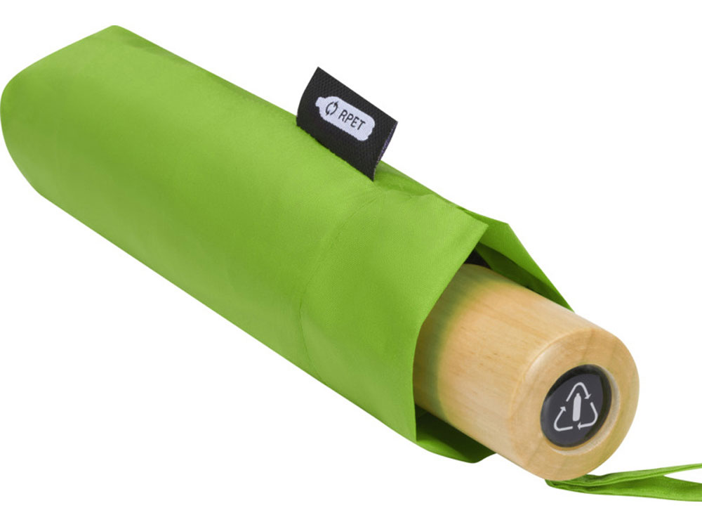 Ручной складываемый зонт с куполом из эпонж полиэстера и переработанного ПЭТ-пластика. Прочный металлический стержень, высококачественная рама со спицами из стекловолокна обеспечивают максимальную гибкость в ветреную погоду. Поставляется с чехлом и может легко поместиться в сумку или рюкзак для удобного ношения. Сочетание деревянной ручки и купола из эпонж полиэстера и переработанного ПЭТ-пластика обеспечивает надежность зонта. Доступен в различных модных цветах с большой областью рисунка на каждой панели.