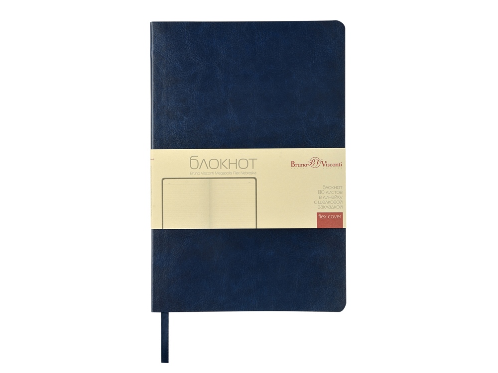 Базовая серия офисных блокнотов Megapolis Flex Nebraska от Bruno Visconti формата А5 - функциональный бизнес-аксессуар для ведения рабочих и личных записей. В нем нет ничего лишнего, но, благодаря высококачественному переплетному материалу из экокожи, он выглядит презентабельно. Гибкая (flex) обложка с углами закругленной формы и ляссе в цвет обложки наделяют блокнот практичностью. 80 листов блока в серую линовку помогают вести записи четко и аккуратно. Блок изготовлен из бежевой бумаги плотностью 70 г/кв.м.