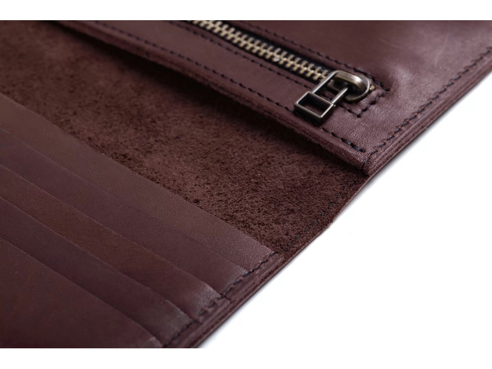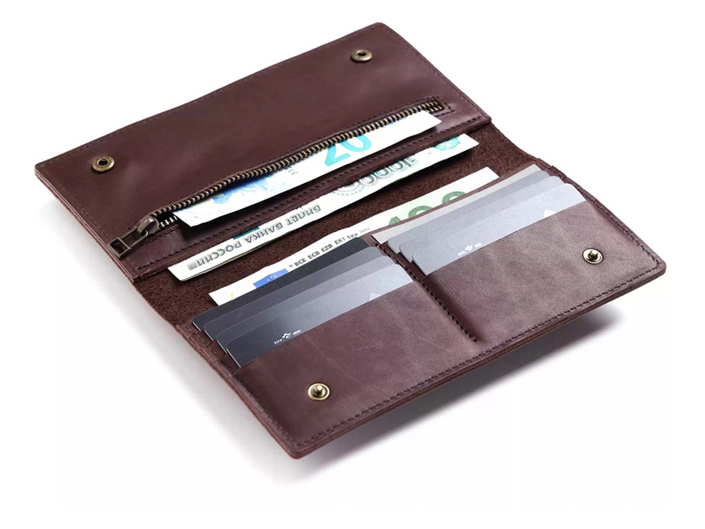 В меру строгий и универсальный, этот кошелек будет верным решением для людей, привыкших носить всё своё при себе. Из фурнитуры присутствует молния и надежные заклёпки. Плотная кожа готова к любым превратностям судьбы – от случайно пролитого кофе до ежедневного многолетнего ношения в разнообразных сумках и рюкзаках.