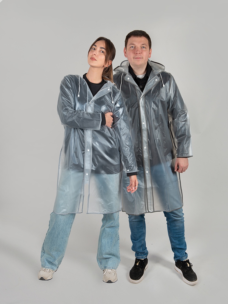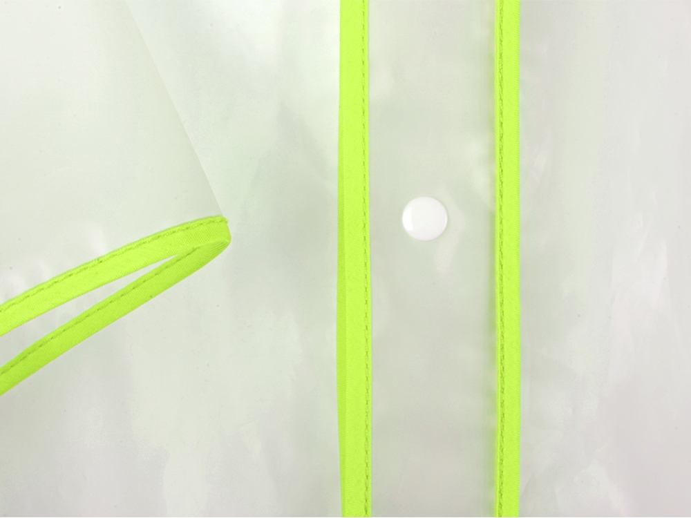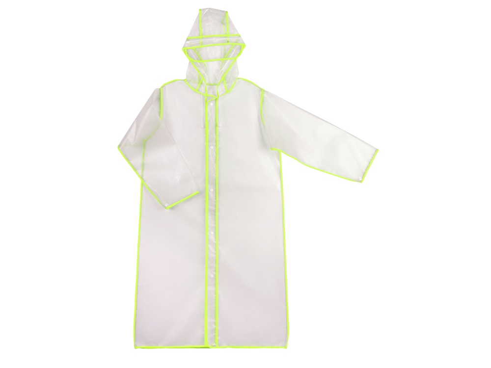 Плащ-дождевик на кнопках с капюшоном Providence Непромокаемый материал EVA - современный и лёгкий Удлиненная модель Прямой крой, втачной рукав Регулировка ширины рукава по низу при помощи кнопки Капюшон с козырьком и утягивающим шнуром Полупрозрачный с цветной окантовкой Складывается в компактную сумку-чехол на кнопках