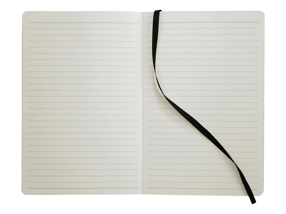 Классический блокнот с мягкой обложкой. Блокнот с мягкой на ощупь обложкой (ориентир размер А5) с эластичной застежкой, закладкой, кармашком для заметок внутри и 80 листов линованной бумаги (80 г/м²). Термо ПУ.