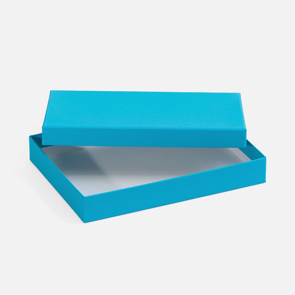 Коробка изготовлена из переплетного картона, кашированного гладкой дизайнерской бумагой Malmero.