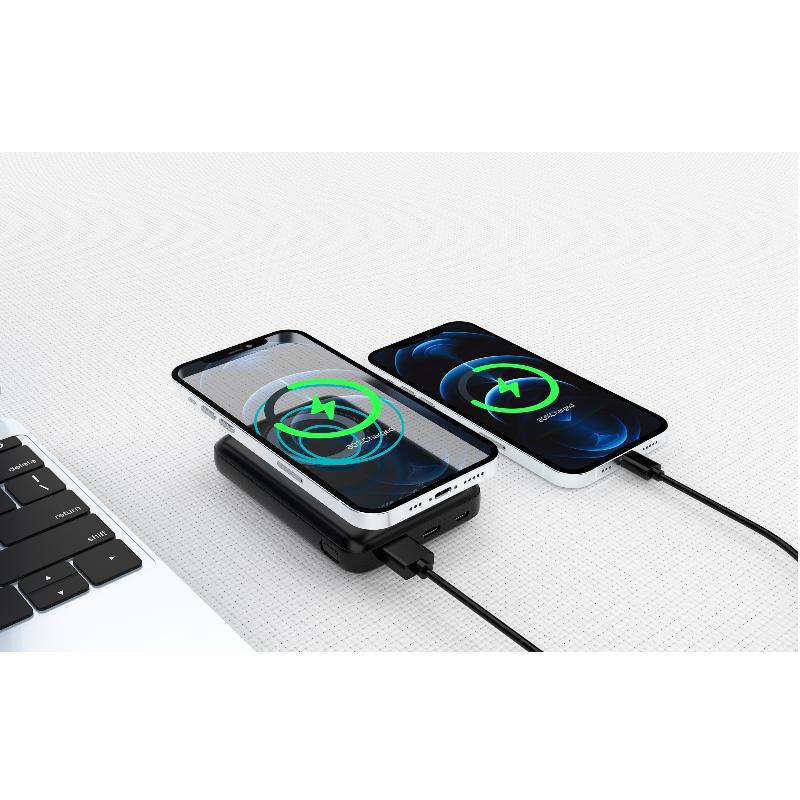 • Заряжает смартфоны/наушники на 50-70% быстрее стандартных пауэрбэнков (через кабель мощность зарядки может достигать 20W, беспроводным способом - до 15W)