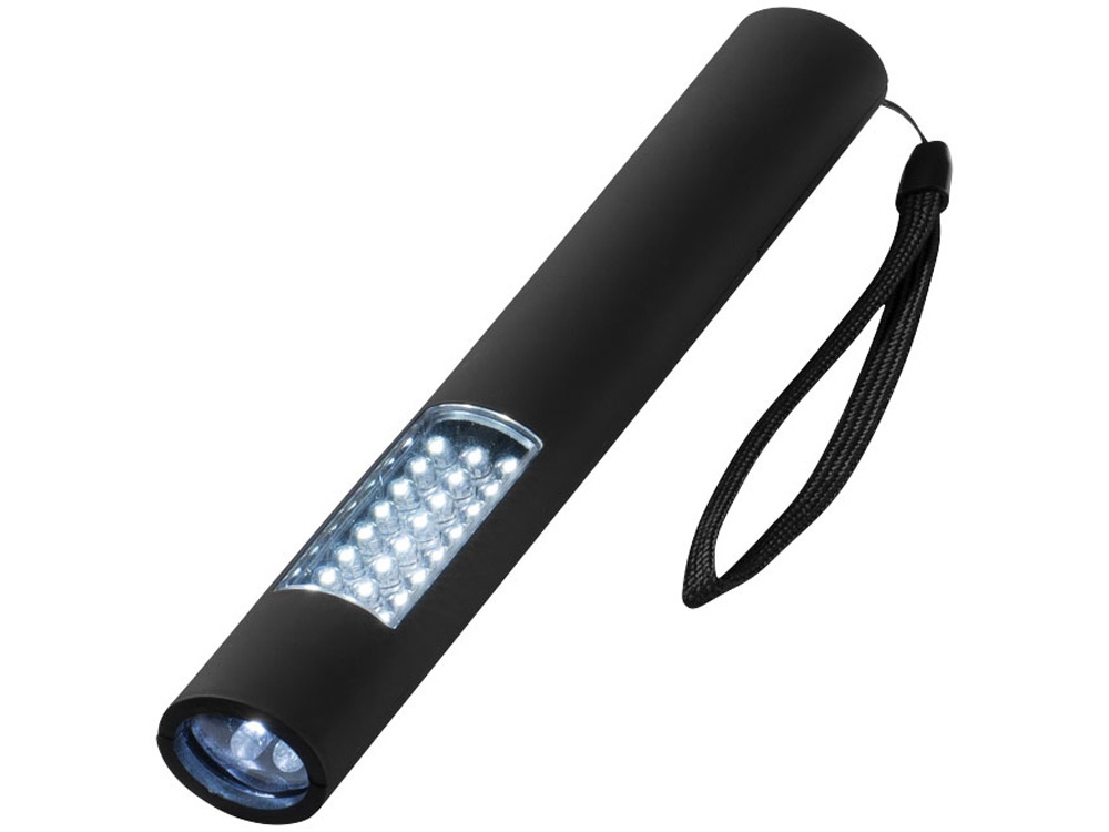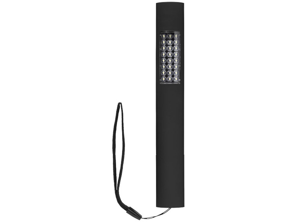 Стильный магнитный фонарик с тремя режимами. Первый режим – 4 осветительных светодиода, второй режим – 24 осветительных светодиода, третий режим – одновременное включения первых двух режимов. Магнитная задняя сторона для удобного хранения или для крепления к металлическим поверхностям во время использования. Кнопка включения/выключения. Нейлоновый ремешок для переноски. Батарейки включены в комплект и вставлены.