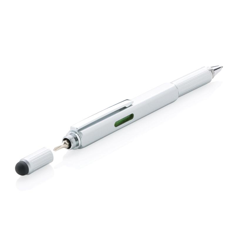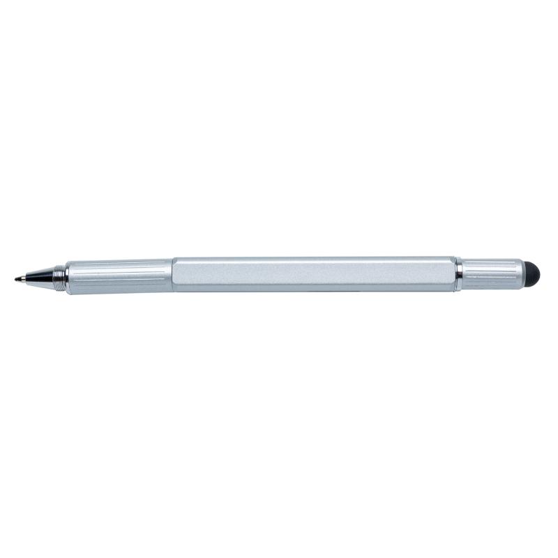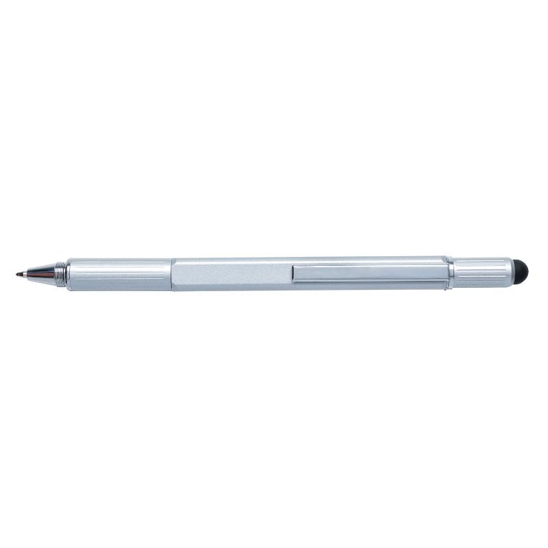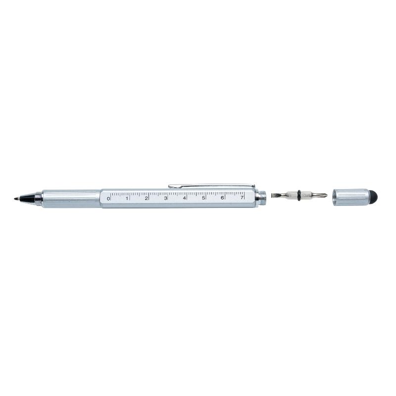 • Многофункциональная ручка совмещает в себе линейку длиной 7см, спиртовой уровень, отвертку, стилус и синюю шариковую ручку