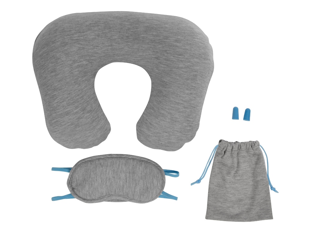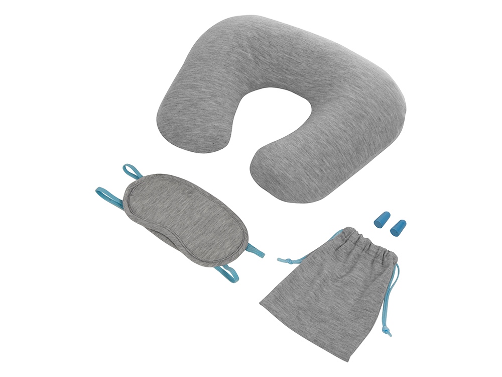 Набор для путешествий Male - ваш помощник и лучший друг в длительном путешествии! Набор выполнен из мягких комфортных материалов и включает в себя надувную подушку, маску для глаз, беруши и мешочек на завязках. Контрастные детали голубого цвета добавляют набору стиля и неповторимости, при этом на универсальном сером будет выигрышно смотреться любой логотип или корпоративный слоган.