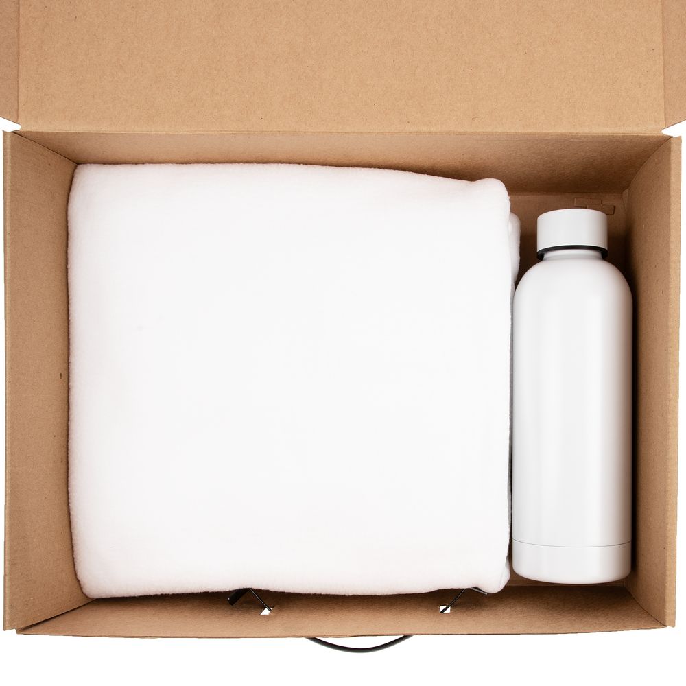 | Материал | бутылка - металл, пластик; плед - флис; коробка - микрогофрокартон, пластик |