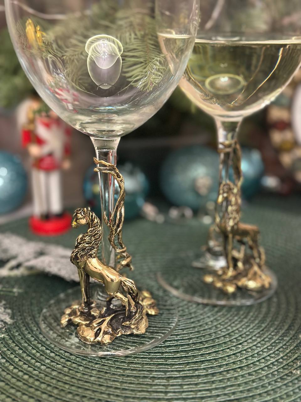 Набор 2 бокала для вина со статуэткой Лошадь купить оптом и в розницу с нанесением логотипа в Перми