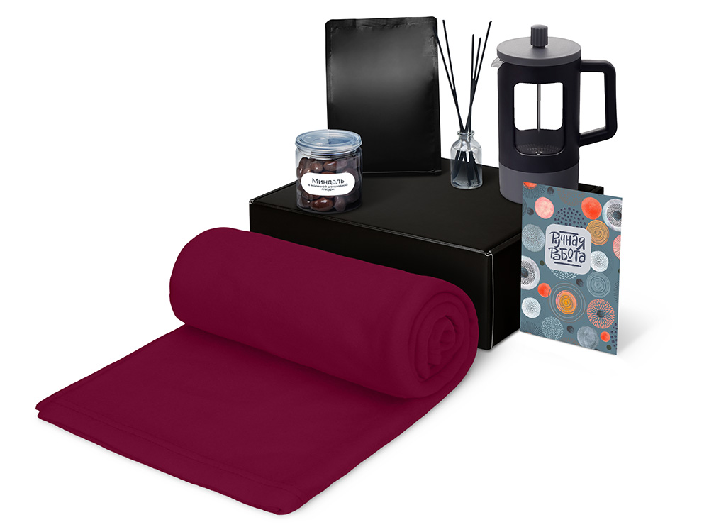 | Материал товара | плед - флис, полиэстер, кофе - пластик, френч-пресс - нержавеющая сталь, боросиликатное стекло, ПП пластик, диффузор - стекло, миндаль - пластик, мешок - нетканый материал (спанбонд), коробка - картон |