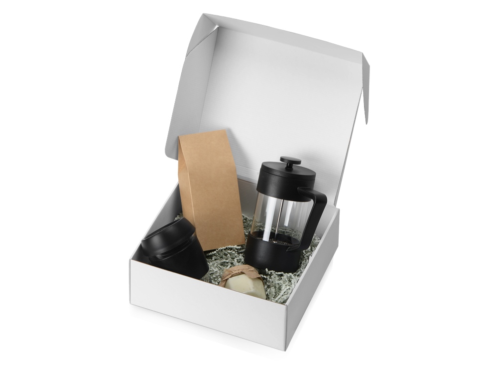 Подарочный набор с кофе, кружкой и френч-прессом Бодрое утро, черный купить оптом и в розницу с нанесением логотипа в Перми
